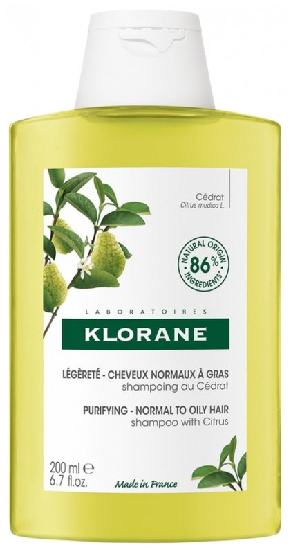 Le Shampooing Légèreté au Cédrat des laboratoires Klorane libère le cuir chevelu de l'excès de sébum et tonifie les cheveux. Il est idéal pour les cheveux normaux qui ont tendance à regraisser vite.