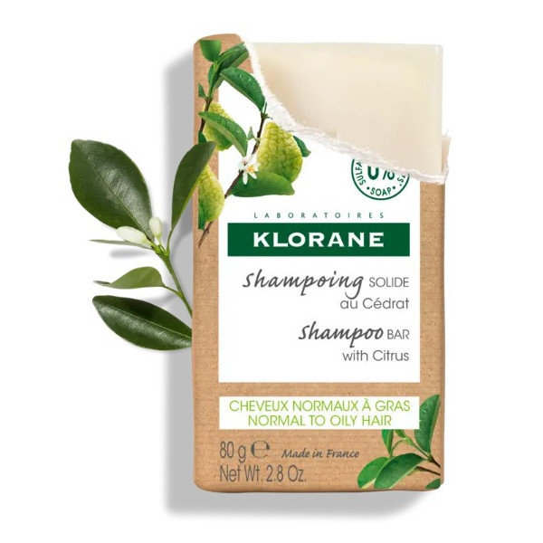 Le shampoing solide au cédrat des laboratoires Klorane nettoie, purifie et tonifie en douceur les cheveux normaux, à gras. Convient dès 12 ans.