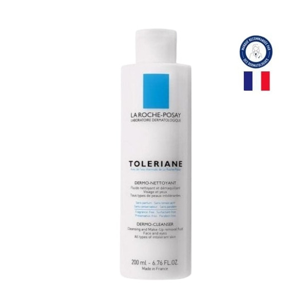 Toleriane Dermo-Nettoyant du laboratoire La Roche-Posay est indiqué pour nettoyer et démaquiller en douceur les yeux et le visage notamment sur les peaux intolérantes.
