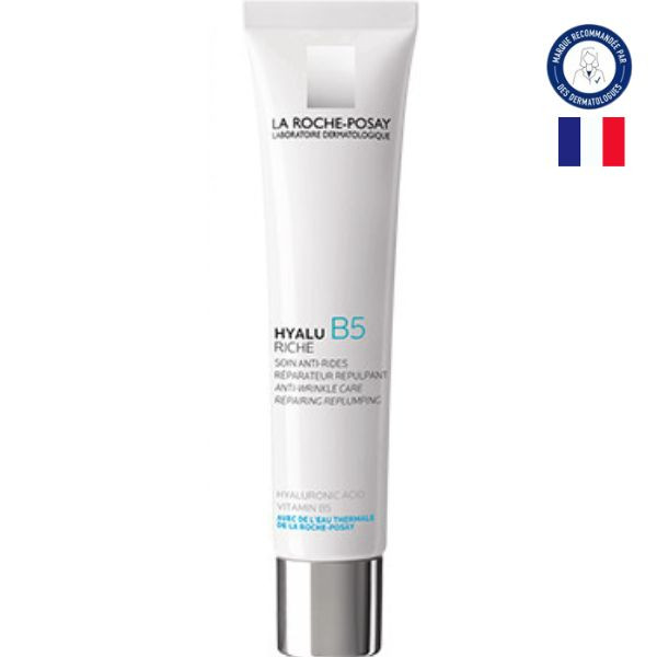 Le soin anti-rides réparateur et repulpant HYALU B5 Riche du laboratoire La Roche Posay lutte contre les rides, repulpe et répare la peau sèche, en renforçant sa barrière cutanée.