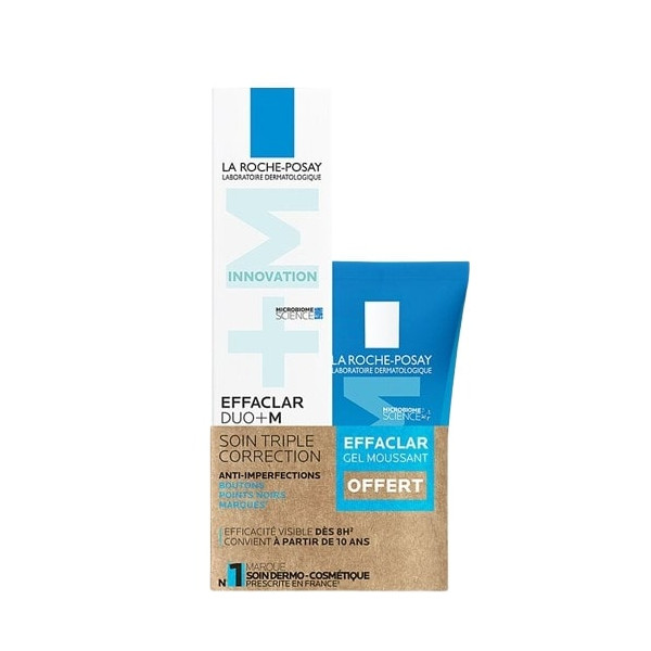 Les laboratoires La Roche-Posay vous propose Effaclar Duo+M Soin Triple Correction 40 ml + le Gel moussant offert. Ce duo pour les peaux à imperfections sévères et les marques est idéal pour éliminer efficacement les imperfections : boutons, points noirs et marques.