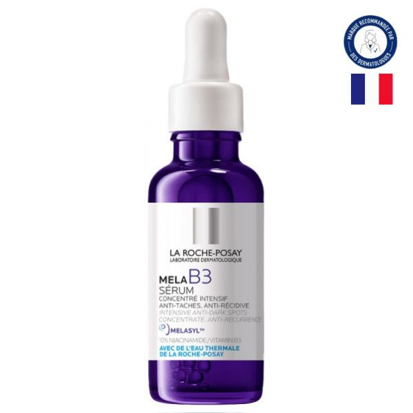 Le Mela B3 Sérum Concentré Intensif est un produit anti-taches et anti-récidive de La Roche-Posay. Il sert à traiter l'hyperpigmentation, les taches brunes persistantes ainsi que les marques post-acné. Notamment, il cible les taches dues au soleil, au vieillissement, au mélasma et aux marques post-inflammatoires.