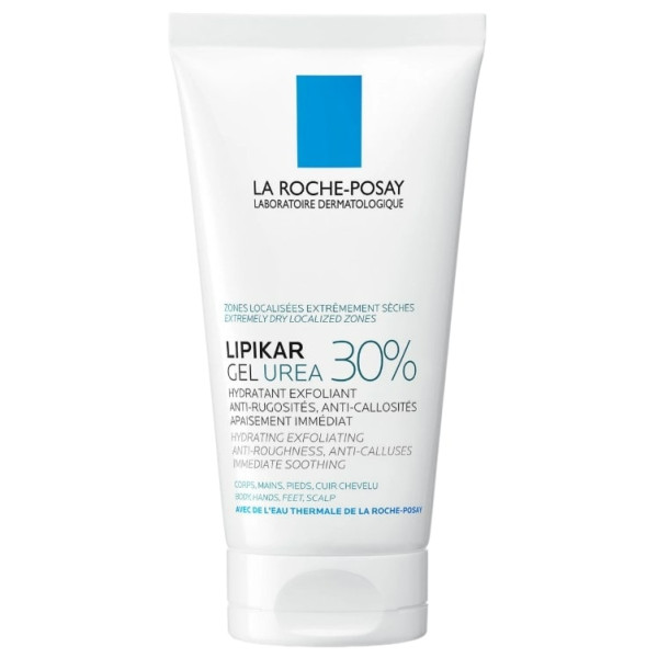 Lipikar Gel Urea 30 % du laboratoire dermatologique La Roche-Posay est un gel hydratant exfoliant, anti-rugosités, anti-callosités et apaisement immédiat pour les zones localisées extrêmement sèches : corps, mains, pieds et cuir chevelu.