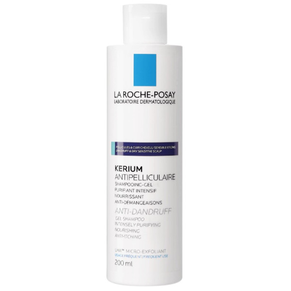 La Roche-Posay propose le shampoing-gel antipelliculaire Kerium pour purifier les cuirs chevelus gras sujets aux pellicules modérées ou ponctuelles. Il est adapté à des usages fréquents sans agresser la fibre capillaire.