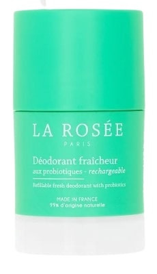Le déodorant fraicheur aux probiotiques La Rosée est conditionné en stick mono-matériau de 50 ml qui est rechargeable et recyclable. La recharge, elle aussi 100 % recyclable, permet de donner une nouvelle vie à l'infini au contenant du déodorant. La recharge du déodorant La Rosée est disponible sur IllicoPhrma, votre pharmacie et parapharmacie en ligne.