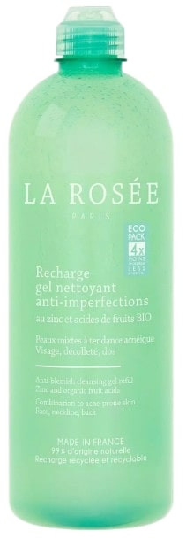 La Recharge Gel Nettoyant Anti-Imperfections de La Rosée permet de nettoyer et d'éliminer toutes les impuretés, les résidus de maquillage et de pollution des peaux mixtes à grasses à tendance acnéique. De plus, il contribue à désincruster et resserrer les pores.