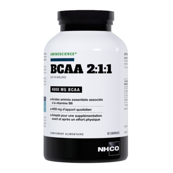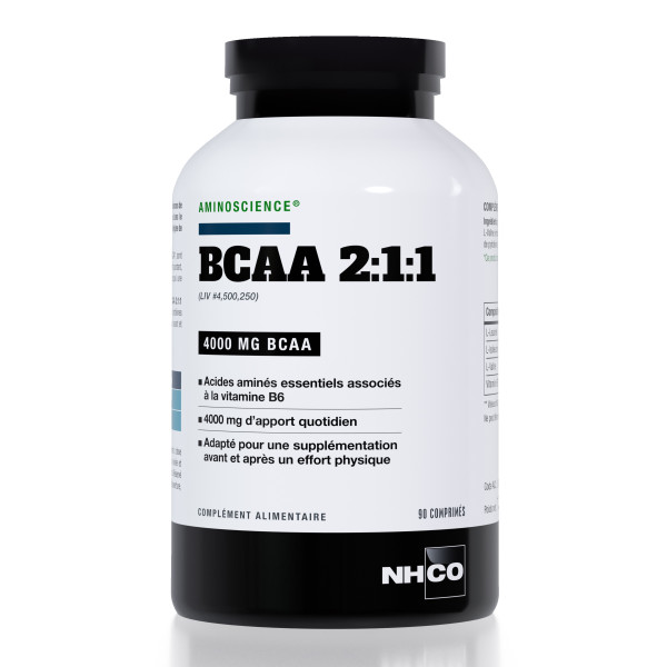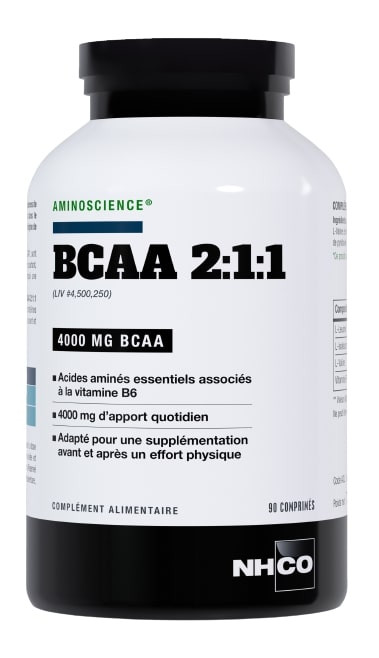- BCAA 2:1:1 apporte 4000 mg de BCAA par prise journalière. BCAA 2:1:1 renferme de la vitamine B6 qui contribue au métabolisme normal des protéines et du glycogène. Ce produit est adapté pour un complément d’alimentation avant et après l’effort physique.