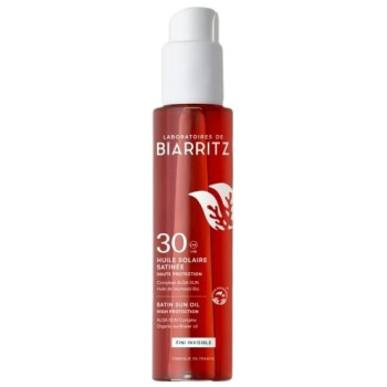 Alga Maris Huile Solaire Satinée SPF30 Bio des Laboratoires de Biarritz assure une protection contre les rayons néfastes du soleil tout en sublimant la peau.