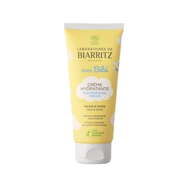La Crème Hydratante Bio pour les bébés des Laboratoires de Biarritz hydrate efficacement et en douceur la peau délicate du visage et du corps de bébé. La peau fine et fragile est ainsi hydratée, nourrie et protégée du dessèchement.