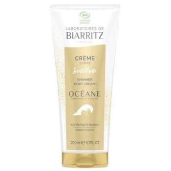Océane Crème Corps Scintillante Bio des laboratoires de Biarritz, aux extraits marins, nourrit et illumine la peau du corps d'un éclat irisée. De plus, elle laisse sur la peau un délicat parfum naturel. Cette crème convient à tous les types de peau et à toutes les carnations.