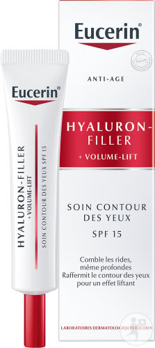 EUCERIN HYALURON-FILLER + VOLUME-LIFT Soin Contour des Yeux SPF 15 figure parmi les produits anti-âges de la marque Eucerin. Il est adapté à tous les types de peaux. Ce soin a été testé sous contrôle ophtalmologique et convient aux porteurs de lentilles de contact.