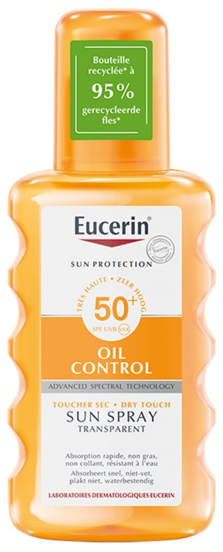 Sun Oil Control Spray Transparent SPF50+ d'Eucerin est un soin qui protège les peaux sensibles des dommages cutanés induits par le soleil. Sa texture à l'absorption rapide est non grasse, non collante et résistante à l'eau.