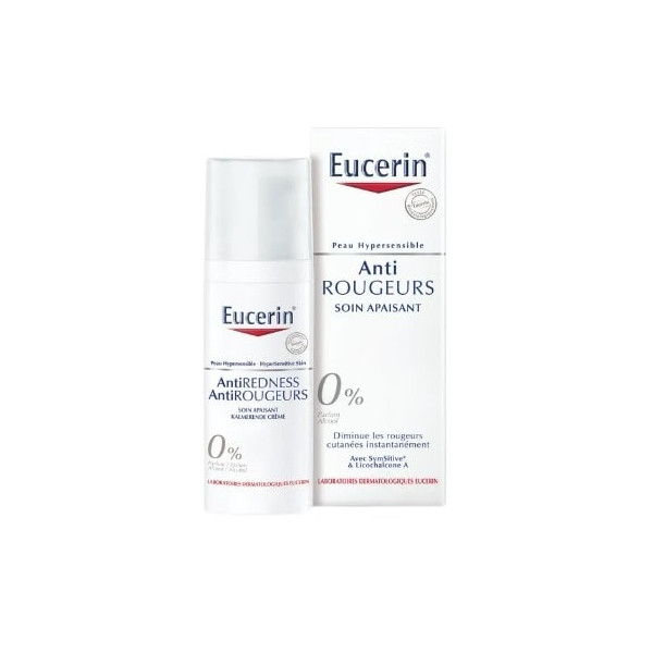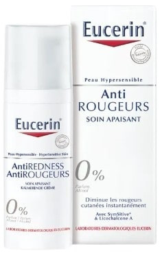 - Produit de soin anti-rougeurs Eucerin pour peaux hypersensibles et sujettes à des rougeurs.