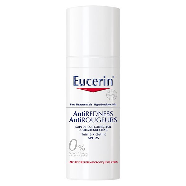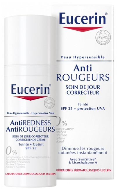AntiROUGEURS Soin de Jour Correcteur du laboratoire Eucerin est une crème légèrement teintée destinée aux peaux hypersensibles. Il diminue instantanément et durablement les rougeurs cutanées tout en protégeant la peau des UVA.