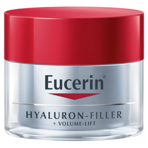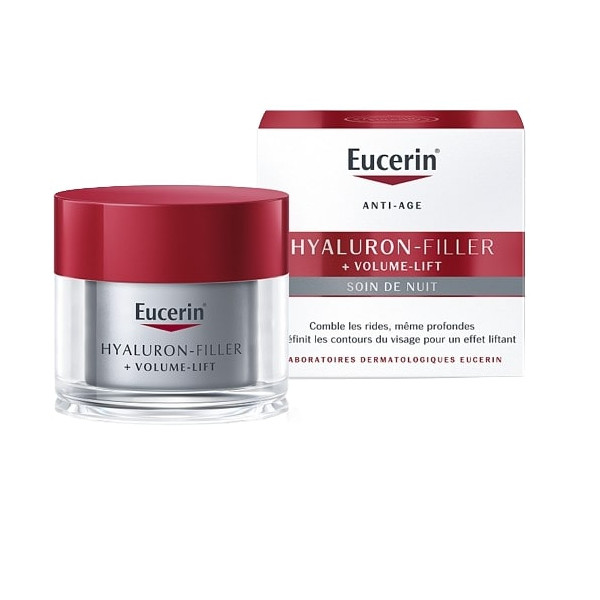 Hyaluron-Filler + Volume Lift Soin de de Nuit des laboratoires dermatologiques Eucerin est un soin anti-âge pour tous les types de peaux. À appliquer le soir avant le coucher, ce soin agit la nuit pour combler les rides et redéfinir les contours du visage pour un effet liftant dès le réveil.