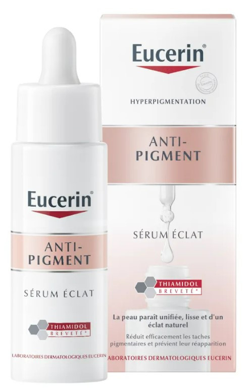 Anti-Pigment Sérum Éclat des laboratoires dermatologiques Eucerin réduit efficacement les taches pigmentaires et prévient leur réapparition pour un teint visiblement plus unifié, lisse et éclatant.