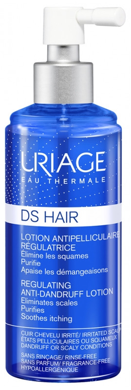 La lotion capillaire DS Antipelliculaire Régulatrice d'Uriage s'utilise pour calmer les démangeaisons, purifier le cuir chevelu et faire disparaitre les pellicules.