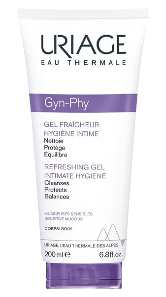 Le gel fraîcheur pour toilette intime Gyn-Phy d'Uriage est indiqué pour le nettoyage des muqueuses sensibles. Il nettoie, tout en respectant l'équilibre de la flore intime.