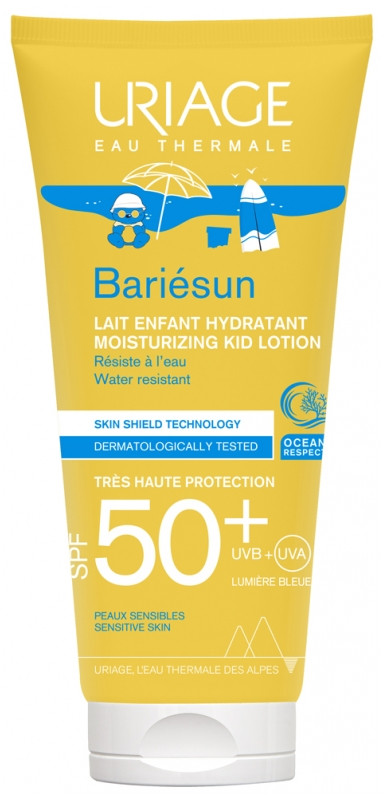 Fabriqué par les laboratoires Uriage, le Bariésun Lait Enfant Hydratant SPF50+ constitue une protection solaire dédiée spécialement aux enfants. Il assure une très haute protection contre les rayons UVA, UVB et la lumière bleue.