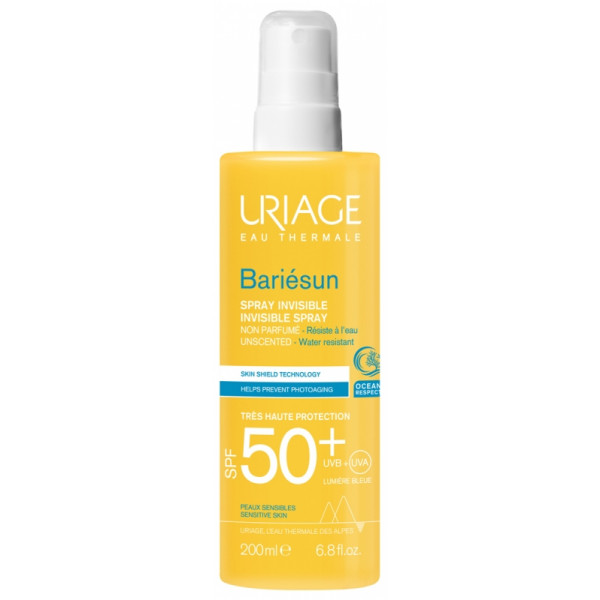 Bariésun Spray Invisible Sans Parfum SPF50+ d'Uriage est une lotion solaire très haute protection, enrichie en eau thermale d'Uriage qui lui confère ses propriétés hydratantes et protectrices. Sa texture est non collante, ne pique pas les yeux et résiste à l'eau.