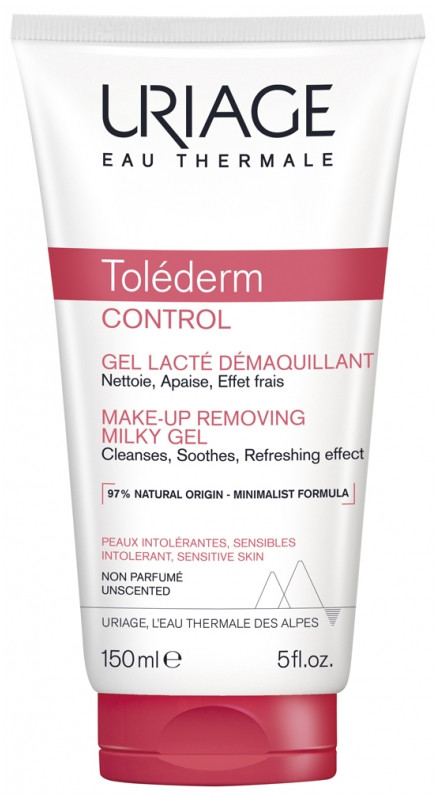 Toléderm Control Gel Lacté Démaquillant 150 ml de la marque Uriage est un soin nettoyant et démaquillant du visage et des yeux. Formulé pour apporter immédiatement et durablement du confort à l'épiderme, il est spécifiquement dédié aux personnes ayant la peau sensible, réactive ou intolérante.