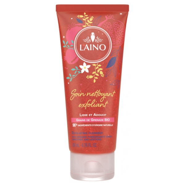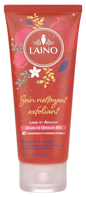 Le Soin nettoyant exfoliant aux grains de grenade Bio de Laino est formulé à base de 96 % d'ingrédients d'origine naturelle. Ce soin permet de nettoyer tout éliminant les peaux mortes afin de retrouver une peau lisse et douce.