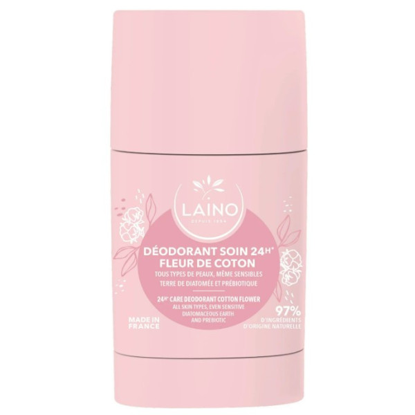 Le Déodorant Soin Fleur de Coton Stick 24h est fabriqué en France par la marque Laino qui perpétue la tradition en utilisant des actifs reconnus pour leur efficacité depuis les temps antiques.