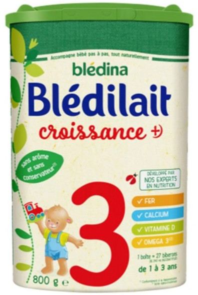 Le lait Bledina Croissance + est recommandé en relais du lait 2ème âge, pour une alimentation diversifiée du nourrisson à partir de 12 mois et de l'enfant de moins de 3 ans