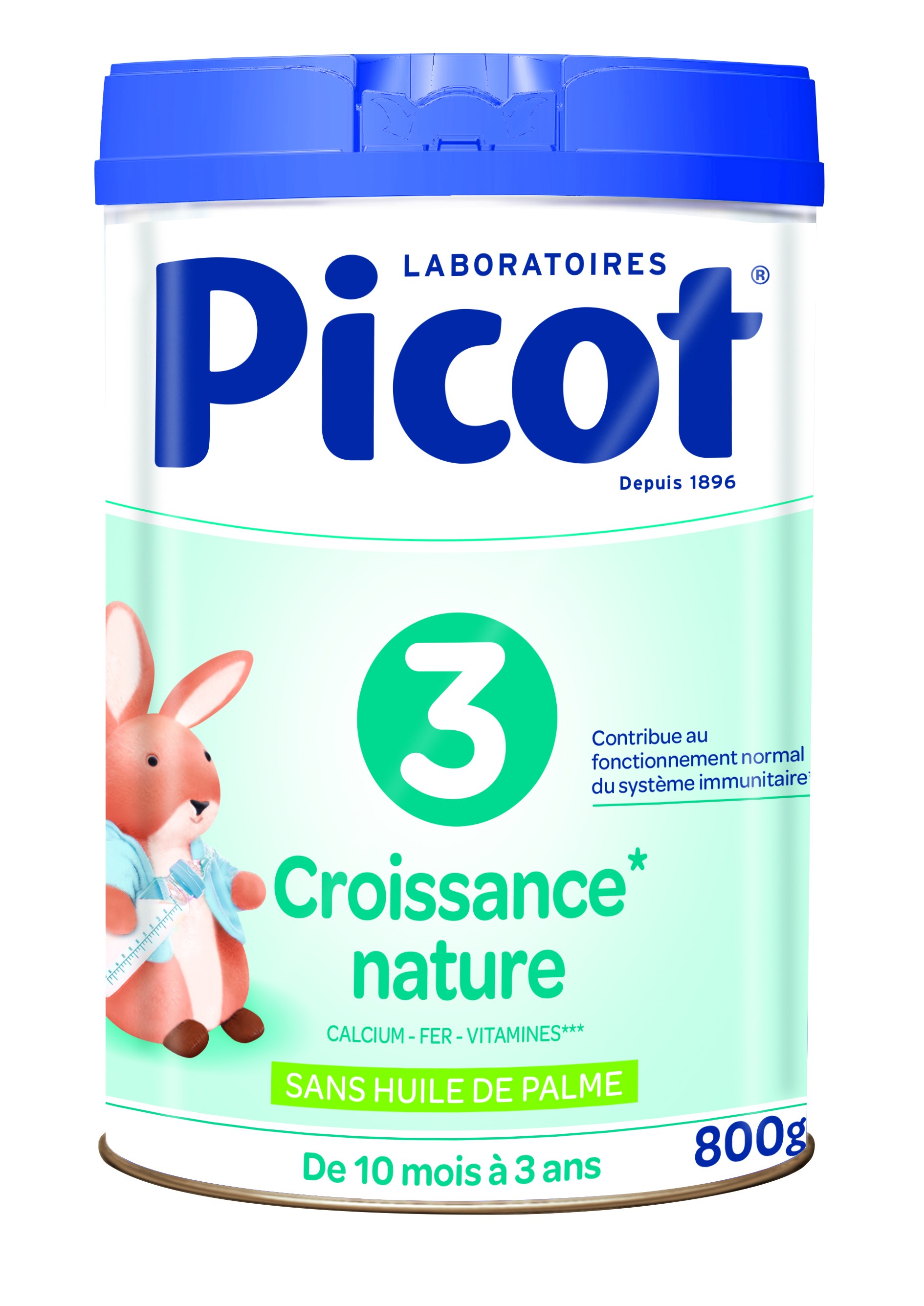 Pour favoriser le bien-être et aider à la croissance normale des bébés âgés de plus de 10 mois, le laboratoire Picot propose le lait en poudre Picot Croissance. Ce lait est spécifiquement formulé à partir d'une association unique de sels minéraux, de vitamines, d'oligoéléments et d'acides gras essentiels. Ce lait contient également du fer, a une quantité 24 fois plus élevée que celui contenu dans le lait de vache. Le lait en poudre Picot Croissance ne referme pas de sucres ajoutés. Il se démarque par son goût nature, sans arôme ni vanilline.