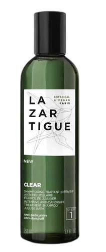 Clear Shampooing Traitant Intensif Anti-Pelliculaire Step 1 de Lazartigue élimine immédiatement les pellicules tout en assainissant le cuir chevelu. Ce shampooing convient aux pellicules sèches et grasses.