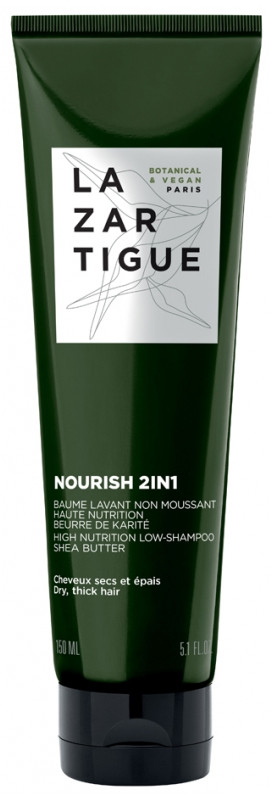 Nourish 2IN1 – Lazartigue – Baume Lavant Non Moussant Haute Nutrition en tube de 150 ml est un soin conçu pour les cheveux secs et épais. Il permet de nettoyer en douceur le cuir chevelu et de nourrir intensément les longueurs et pointes en respectant la fibre capillaire.