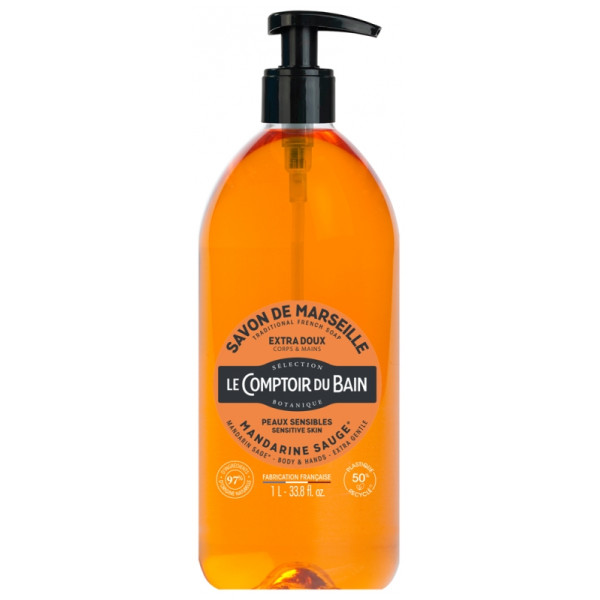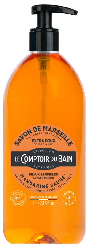 Savon Liquide Mandarine Sauge 1L Le comptoir du ba