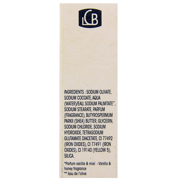 Sodium Olivate, Sodium Cocoate, Aqua (Water)/Eau, Sodium Palmitate*, Sodium Stearate, Parfum (Fragrance), Butyrospermum Parkii (Shea) Butter, Glycerin, Sodium Chloride, Sodium Hydroxide, Tetrasodium Glutamate Diacetate, CI 77,492 (Iron Oxides), CI 77,491 (Iron Oxides), CI 19,140 (Yellow 5), Silica.