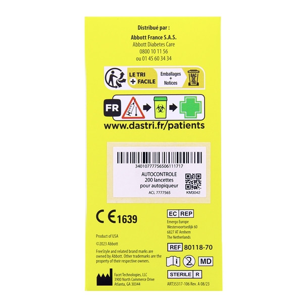 Ces dispositifs médicaux s’utilisent avec les stylos autopiqueurs de la gamme Freestyle d’Abbott et d’autres équipements de tests glycémiques adaptés.