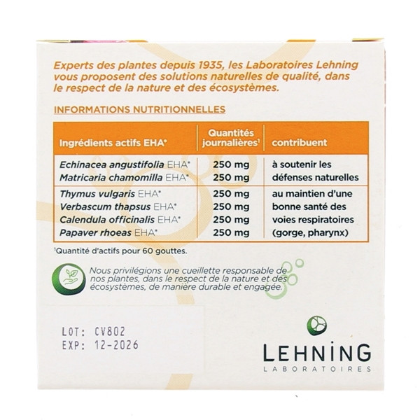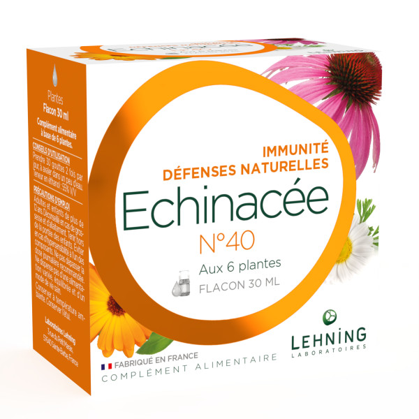 Lehning Echinacée n°40 est un complément alimentaire à base de 6 plantes pour l'immunité et les défenses naturelles.