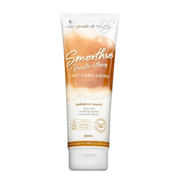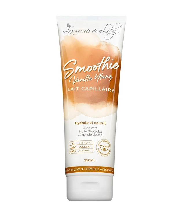 Smoothie Vanille Ylang Lait Capillaire Les secrets de Loly est un produit destiné à hydrater et à nourrir les cheveux secs. Ce lait capillaire répare, protège, adoucit et limite les fourches. Il convient aux cheveux frisés et crépus.