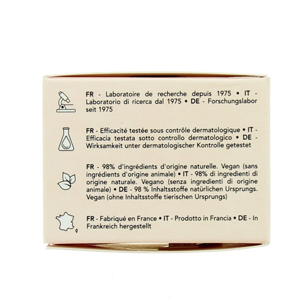 Vous retrouverez dans la formule de cette crème de l'ARN de rose, de la tulipe noire et de l'acide hyaluronique.