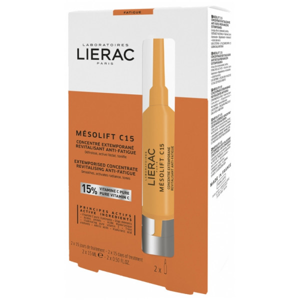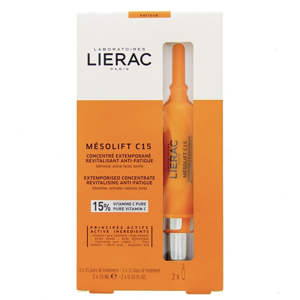 C15 Concentré extemporané revitalisant anti-fatigue de la gamme Mésolift des laboratoires Lierac est un soin du visage défroissant, tonifiant et sublimateur. Il est idéal pour la peau lors de périodes de stress, de fatigue ou de changements de saisons.