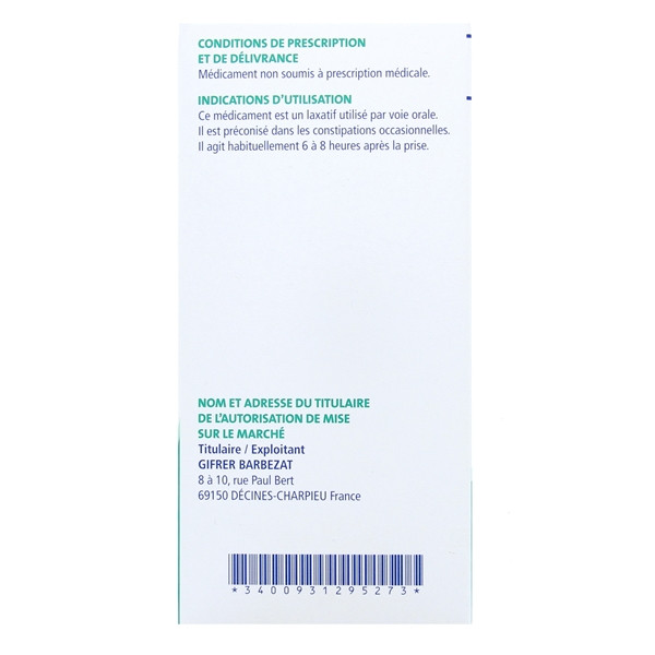 L'effet laxatif se manifeste après un délai de 6 à 8 heures.