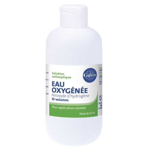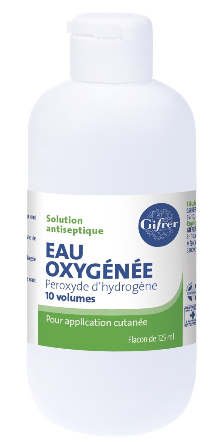 Disponible en flacon de 125 ml d'eau oxygénée 10 volumes.