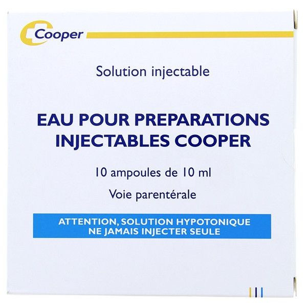 L'injection d'eau pour préparation injectable par voie intraveineuse peut être responsable d'une hémolyse si celle-ci est administrée seule.