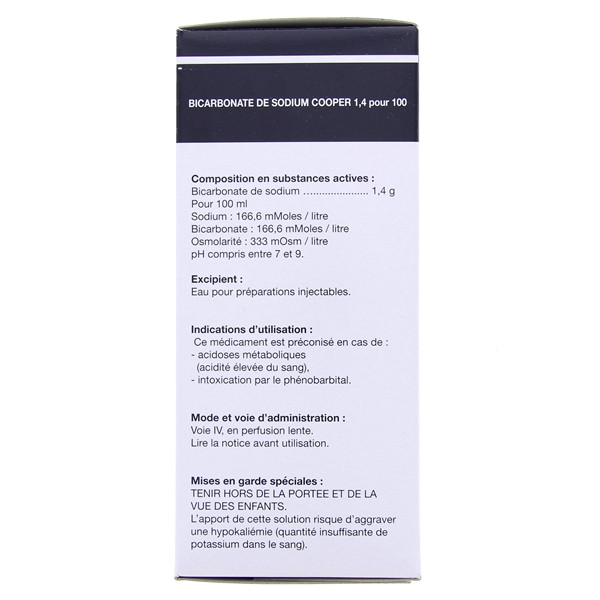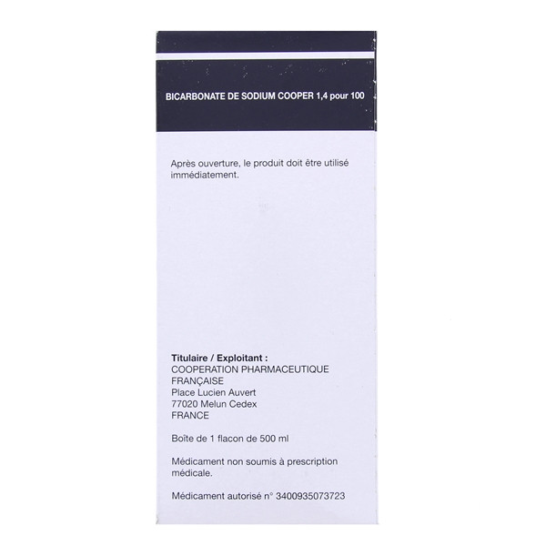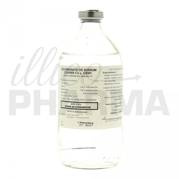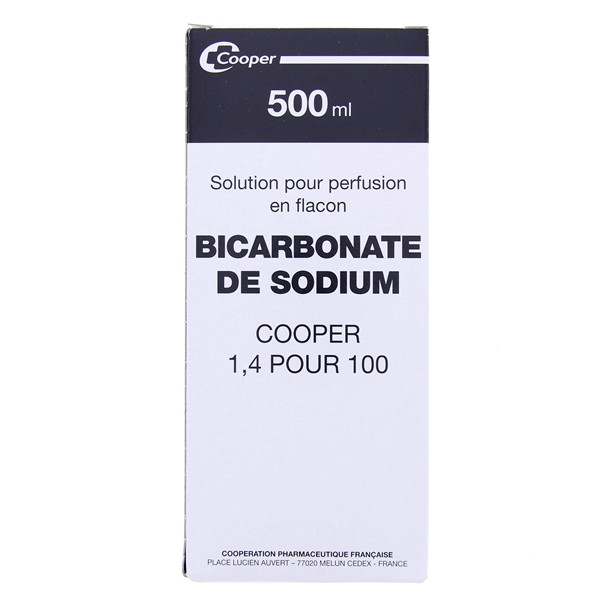 Bicarbonate de sodium Cooper 1,4 % est disponible en flacon de 500 ml