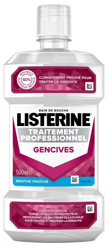 - Bain de bouche Listerine Traitement professionnel à utiliser 2 fois par jour, après s’être brossé les dents ou suivant les prescriptions du dentiste.
