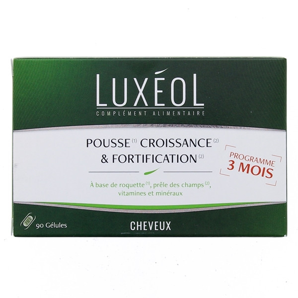 Grâce à ses actifs, Luxéol Pousse Croissance & Fortification agit à 3 niveaux pour des cheveux qui retrouvent leur éclat. Luxéol est un complément alimentaire à base de roquette, prêle des champs, vitamines et minéraux.