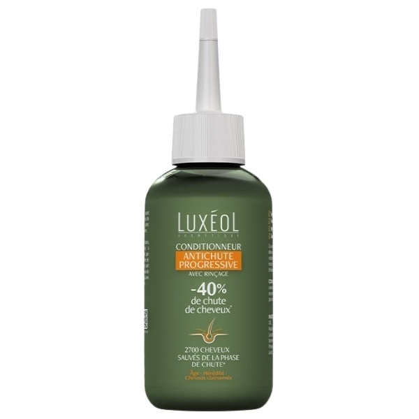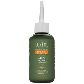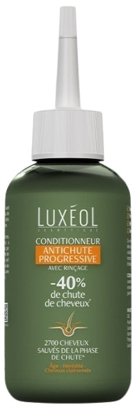 Le Conditionneur Antichute Progressive de Luxéol est un soin avec rinçage qui a pour rôle de diminuer de 40 % la chute de cheveux progressive liée à l'âge, l'hérédité et les cheveux clairsemés. Ce soin renforce visiblement les cheveux et apporte douceur et brillance.