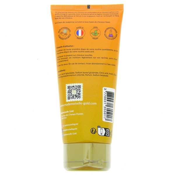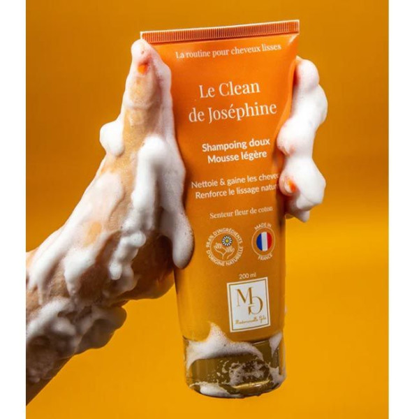Le Clean de Joséphine Shampoing Doux de la marque Mademoiselle Gold est destiné à tous les types de cheveux lisses. Ce shampoing doux ˆ la mousse légère nettoie et gaine les cheveux tout en renforçant le lissage naturel.