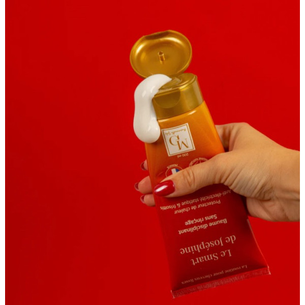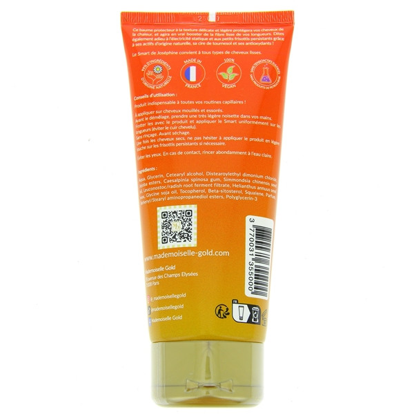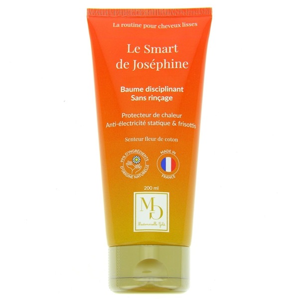 Le Smart de Joséphine Baume Disciplinant Sans Rinçage de la marque Mademoiselle Gold est destiné à tous les types de cheveux lisses. Ce baume protège les cheveux de la chaleur et lutte contre l'électricité statiques et les frisottis. La fibre est ainsi parfaitement lissée.