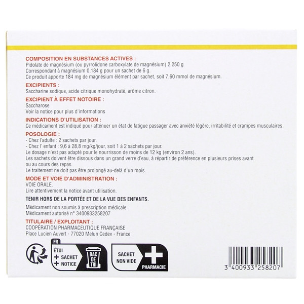Ce médicament contient du magnésium, élément minéral indispensable au métabolisme.