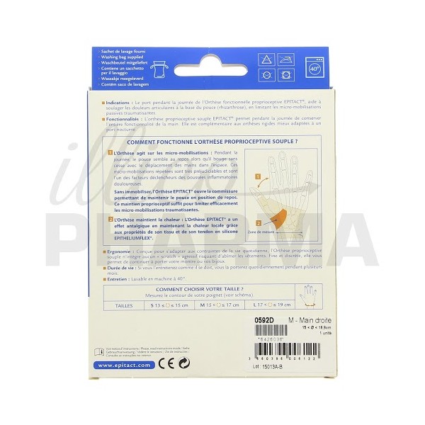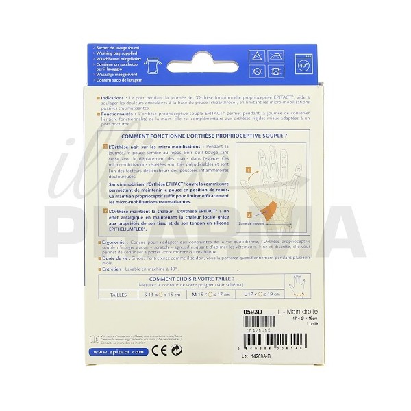 Disponible en boite d'unité, pour pouce droit, taille Small ou Medium ou Large