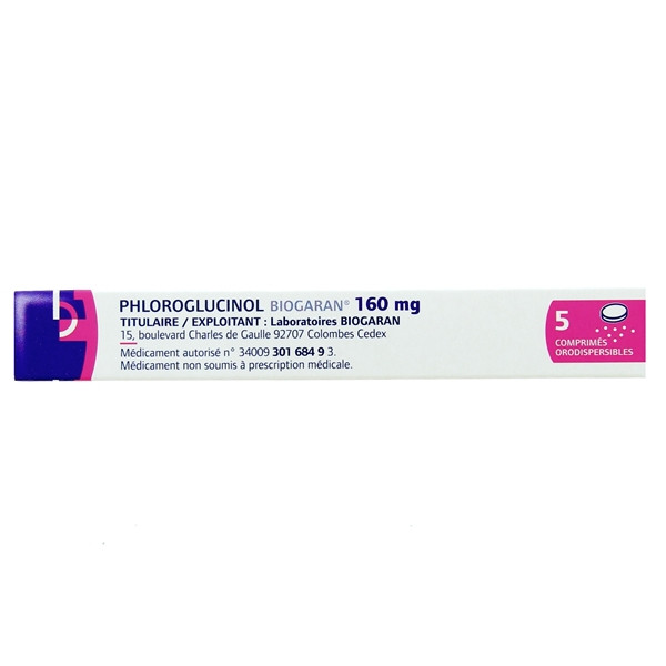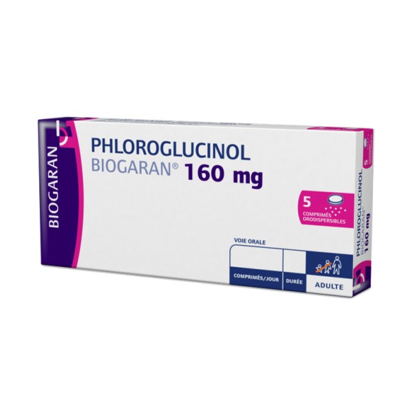 Phloroglucinol Biogaran 160mg est le médicament générique du Spasfon-Lyoc 160mg. Il est disponible en boîte de 5 comprimés orodispersibles.